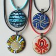 M04 B-Minták feketén fehéren – medál A vörösréz lemez fekete fehér és citromsárga színű opak (nem áttetsző) tűzzománc iszappal festett. A tűzzománc felület 860 fokon kétszer égetett. A lánc 50 cm hosszú a láncrögzítőkarikákkal, a homárkapoccsal és 5 cm hosszú hosszabbítólánccal.