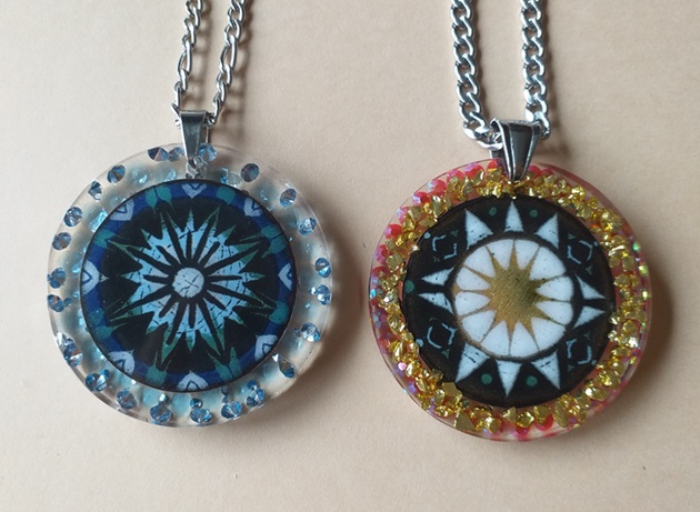 - EM1 Kék csillogás – A zománcozott vörösréz korong fehér, világoskék, sötétkék és fekete opak zománc iszappal festett, 850 fokon égetett. Epoxigyantába ágyazva világoskék strasszkövekkel díszítve, hátoldalán ezüst színű fém lapocskákkal borítva.