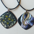 A tűzzománc medál legnagyobb mérete: 32 x 41 mm. Hátoldala polírozott, kérésre fekete zománcfestékkel bevonható, melyhez szükséges pár nap száradási idő.  A tűzzománc medálok 8 mm hosszú nemesacél akasztóval kapcsolódnak a 2 mm vastag, 40 cm-es pasztell narancs színű viaszolt, bőrhatású szálakhoz, melyek  5 cm-es ezüst színű hosszabbító lánccal végződnek.