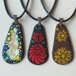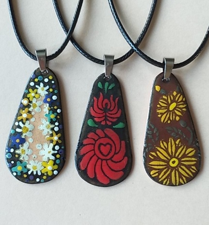 M27 – Matyós virágok: A medál képfelülete fekete, vörös, zöld opak( nem áttetsző) zománciszappal festett, égetett. Hátoldala fekete zománc festékkel bevont.